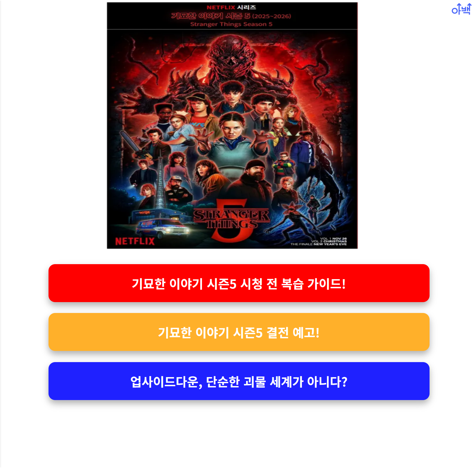 기묘한 이야기 시즌5가 마침내 2025년 마지막을 장식할 초대형 콘텐츠로 확정됐습니다.